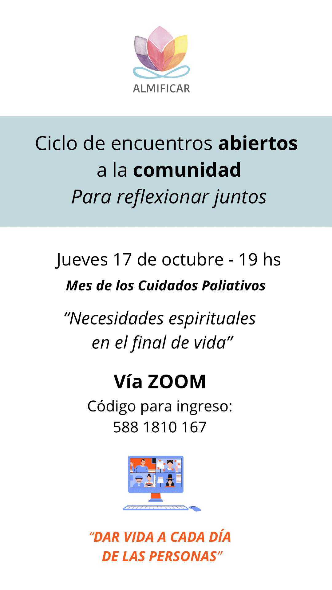 Ciclo de encuentros abiertos a la comunidad Categoría de la entrada:2024 / Archivo Eventos y Campañas Ciclo de encuentros abiertos a la comunidad Como todos los 3ros jueves del mes, te invitamos a que nos acompañes y nos tomemos un momento para reflexionar juntos. VIA ZOOM:Código de ingreso: 588 1810 167 Relacionado Etiquetas: 2024, almificar, emociones, encuentro, flyer, reflexionar Leer más artículos Entrada anteriorGrupo personas en duelo Siguiente entrada¿Querés saber más de Almificar? También podría gustarte Ciclo Cuidándonos 28 octubre, 2021 ✨✨GRAN FIESTA GRAN!! 22 abril, 2025 Grupo de Duelos 1 noviembre, 2021